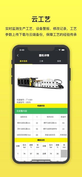 注塑云2.0平台是一款为广大注塑工厂大家的软件,能够提高工厂生产环境,能够给大家带来更好的服务,大家可以在这里体验更加高效的工作服务,使用软件来监测管理设备,能够查看相关的数据,设备机器的状态一目了然,还有更多的功能大家可以亲自来体验一下。